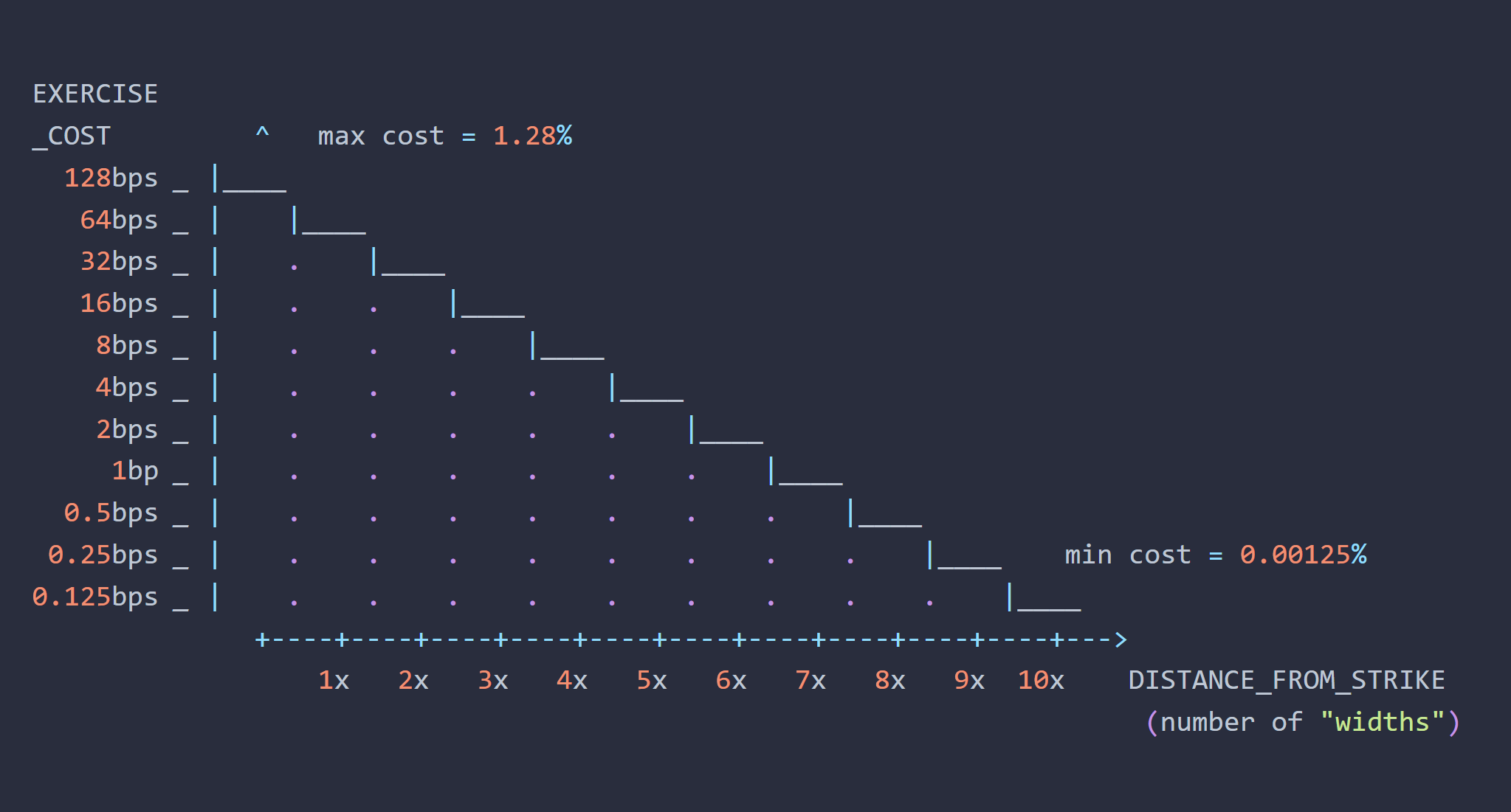 As mentioned, options sellers need to pay a fee to force exercise a position. The farther the price of the underlying asset is from the strike, the cheaper it is to force exercise an option. The percent fee is capped at both a minimum and maximum percent.