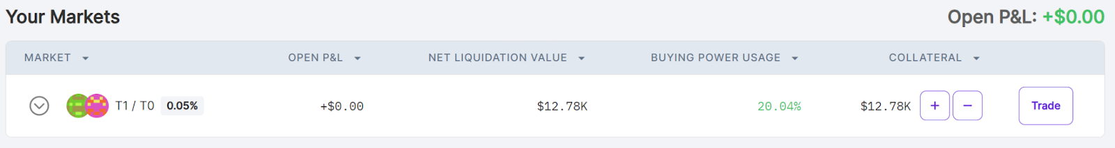 Illiquid Uniswap pools and volatile token pairs can quickly cause buying power usage to spike. Exercise caution when trading in these markets.