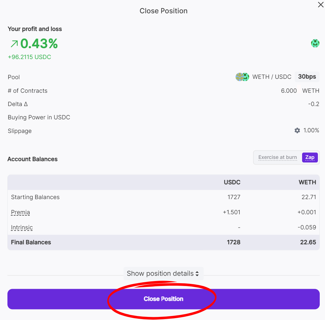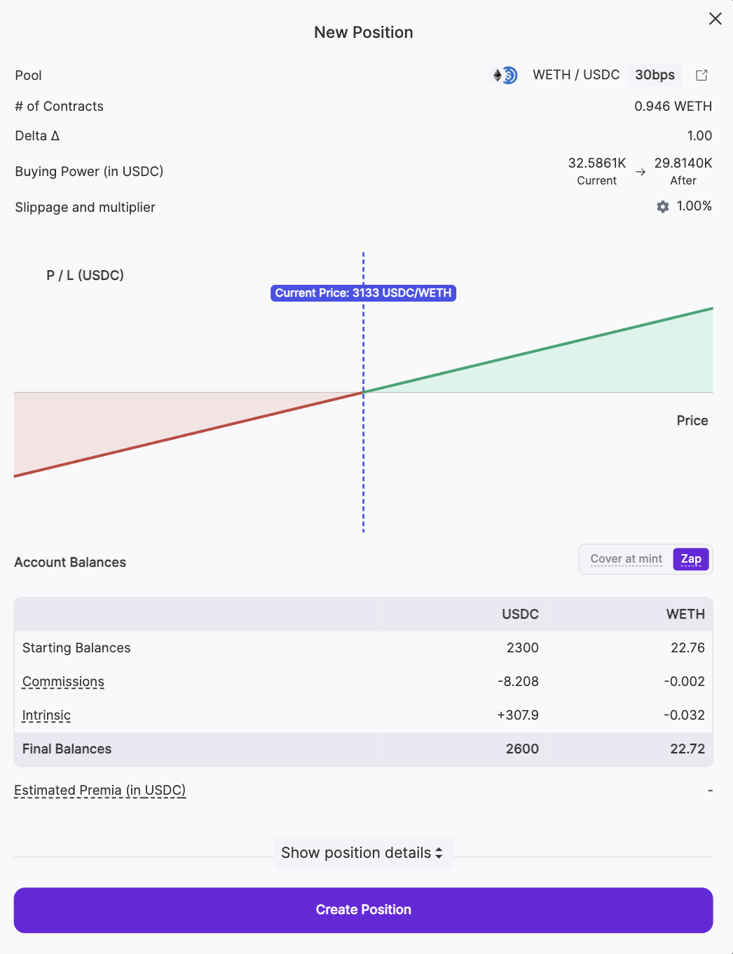 Once you’ve decided on your strategy and leverage, it’s time to open your position. Panoptic’s interface makes it easy to execute your trade and manage your position over time.
