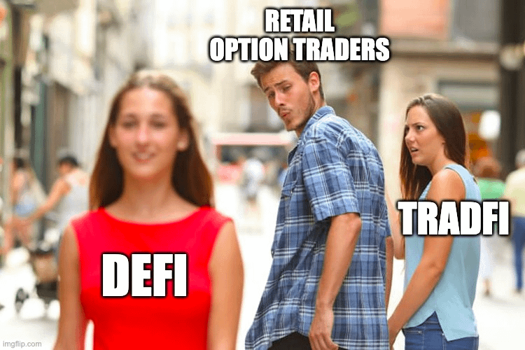 With the increasing trend of retail options trading in TradFi, it's only a matter of time before retail options sweeps into DeFi.